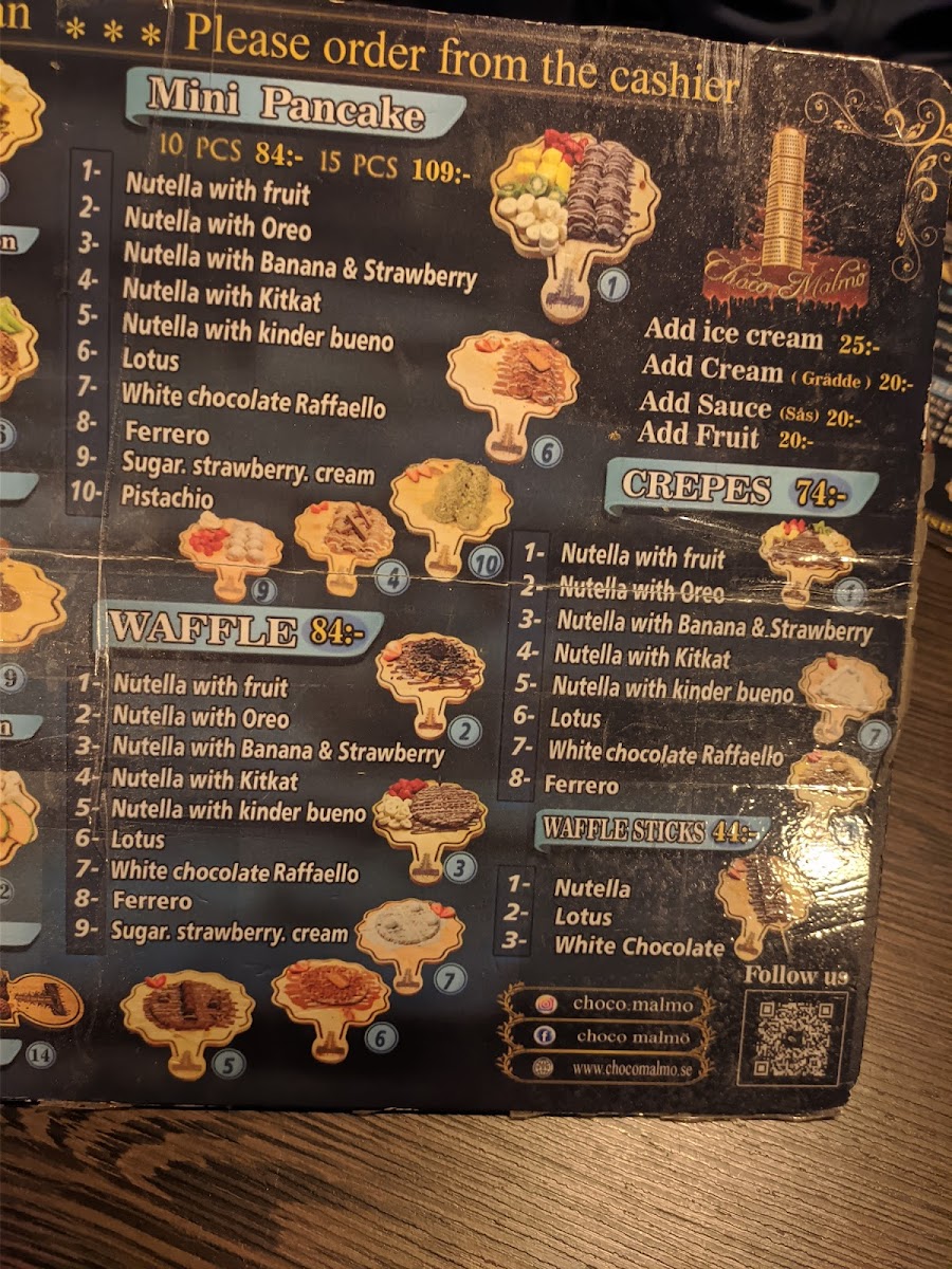 The true star of Choco Malmo is its extraordinary menu, which boasts a mouthwatering array of crêpes and waffles, all featuring decadent chocolate and fresh fruit. Picture yourself savoring the famous Nutella wafflestick—a masterpiece served piping hot and drizzled in luscious Nutella, complemented with fresh strawberries and bananas. Each bite is a heavenly combination of warm, fluffy texture and rich toppings, guaranteed to tantalize your taste buds.